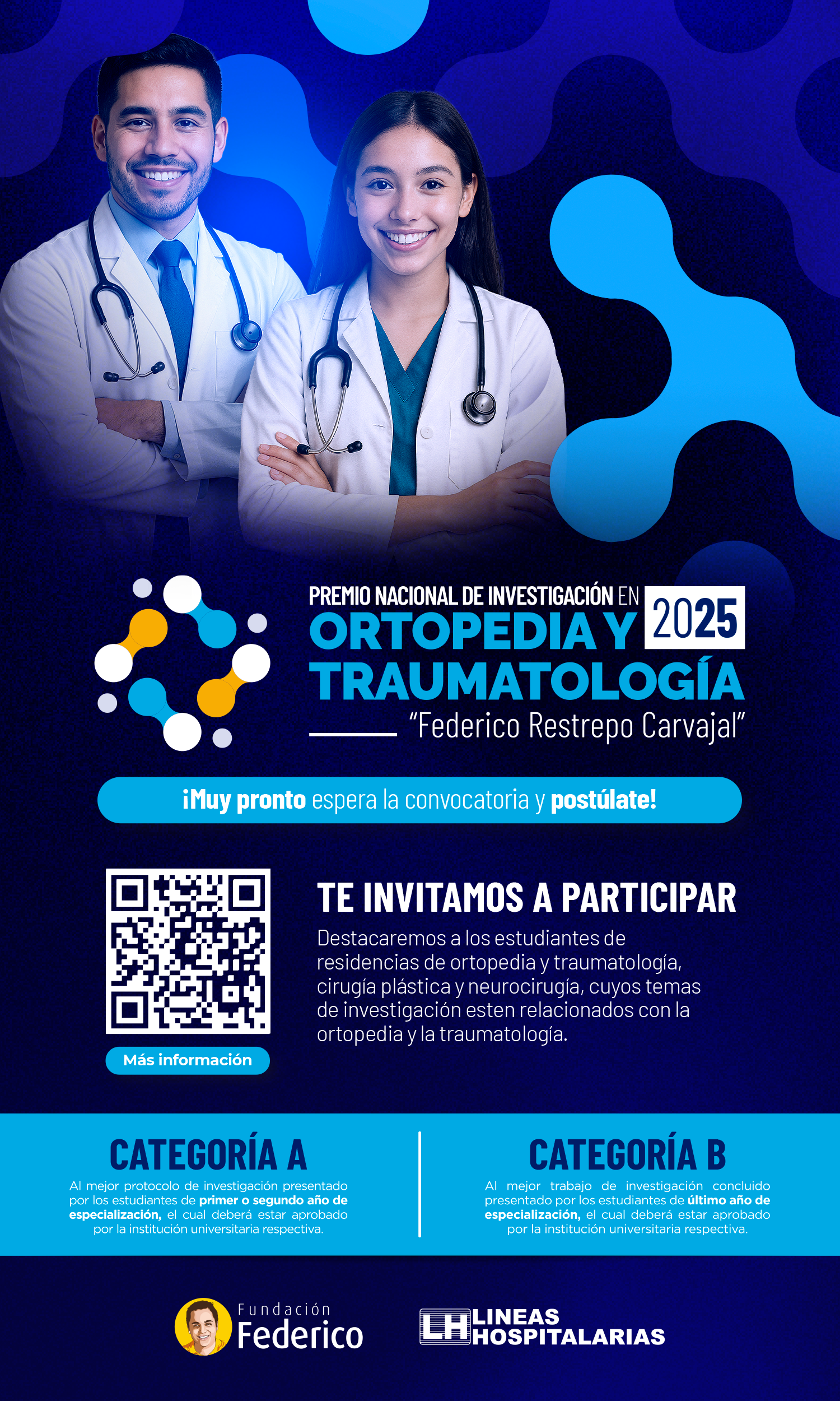Si eres estudiante de postgrado en Ortopedia y Traumatología, Cirugía Plástica y Neurocirugía postula tu trabajo de investigación a nuestro Premio Nacional de Investigación en Ortopedia y Traumatología “Federico Restrepo Carvajal”